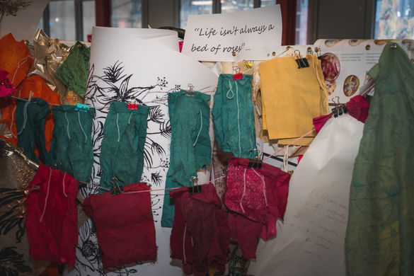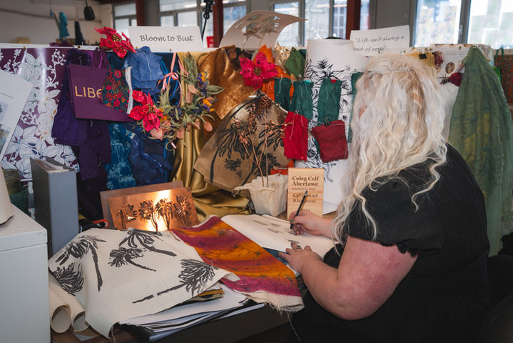 Mae fy mhrosiect terfynol yn trafod y cylch fywyd blodau a phlanhigion, sydd hefyd yn gysylltiedig ar lefel bersonol o ddelio gyda fywyd ar ol colliad a sut mae natur bob amser yn canfod ffordd i ailddyfu a symud ymlaen. Datblygais palet lliw moethus a chyfoethog i’r priosect yma sy’n dod a fy ddyluniadau yn fyw ar gyfer cynhyrchion arddurniadol i leoedd mewnol masnachol gan gynnwys papur wal a ffabrig i wneud clustogau a gorchudd goleuadau.